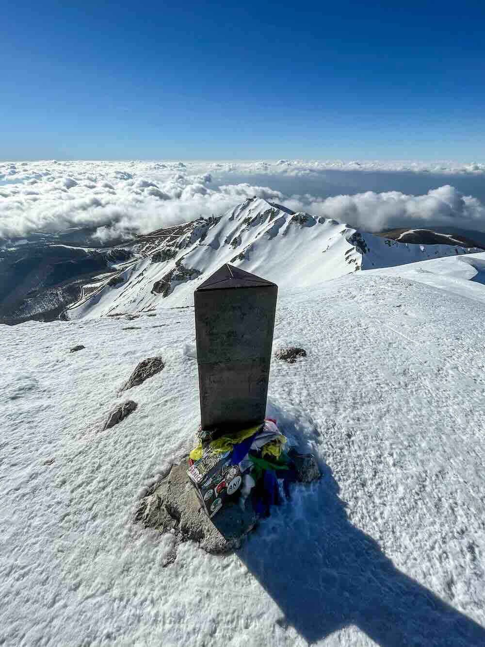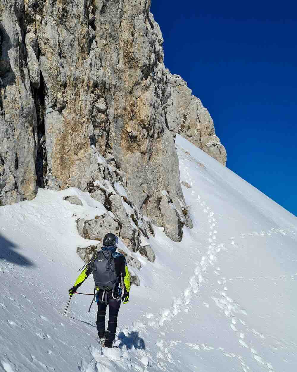 - Obligatorio: Casco per alpinismo, imbrago, piccozza , ramponi, kit Artva (artva-pala-sonda).