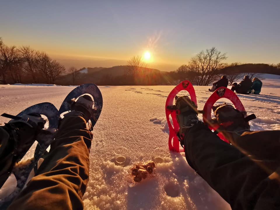 Si comincia con una ciaspolata pomeridiana per goderci l’ultimo tramonto del 2024 da un balcone unico, la cima del monte Cardito. Qui ci aspetta anche il nostro primo aperitivo per brindare all’ultimo giorno dell’anno.