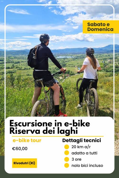 Un giro ad anello tutto su strada bianca in parte attraverso le pianeggianti distese d’erba e in parte tra boschi di faggio circondati dalle catene montuose che culminano con la vetta più importante della zona: il Monte Nuria. Il paesaggio è disseminato dalle tipiche costruzioni in pietra memoria di una fiorente attività agro pastorale. Visiteremo il lago di Rascino dalla caratteristica forma ramificata poi una breve deviazione ci porterà nel vicino altopiano di Cornino, Anche qui ci aspetta un lago, più piccolo ma altrettanto caratteristico, con il suo bosco di conifere. Al termine del tour ci aspetta poi un ristoro a base di prodotti tipici tra cui la rinomata lenticchia di Rascino
